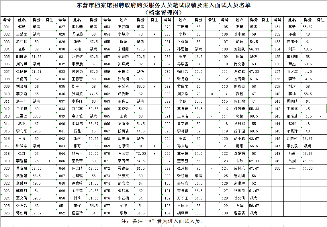 二、按照筆試成績,以1:3的比例確定進入面試的人員。筆試缺考人員,成績?yōu)椤?”。
