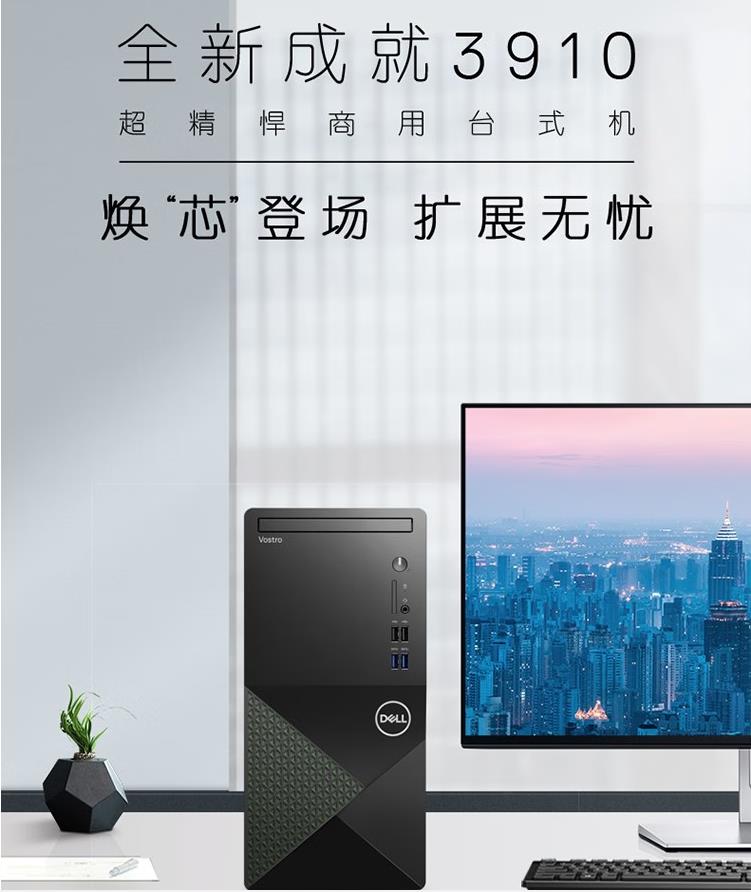 戴爾(DELL) Vostro成就3910-14N9十二代酷睿內(nèi)置WIFI辦公設(shè)計臺式電腦主機(jī)i5-12400 8G 256G+1T加21.5英寸顯示器