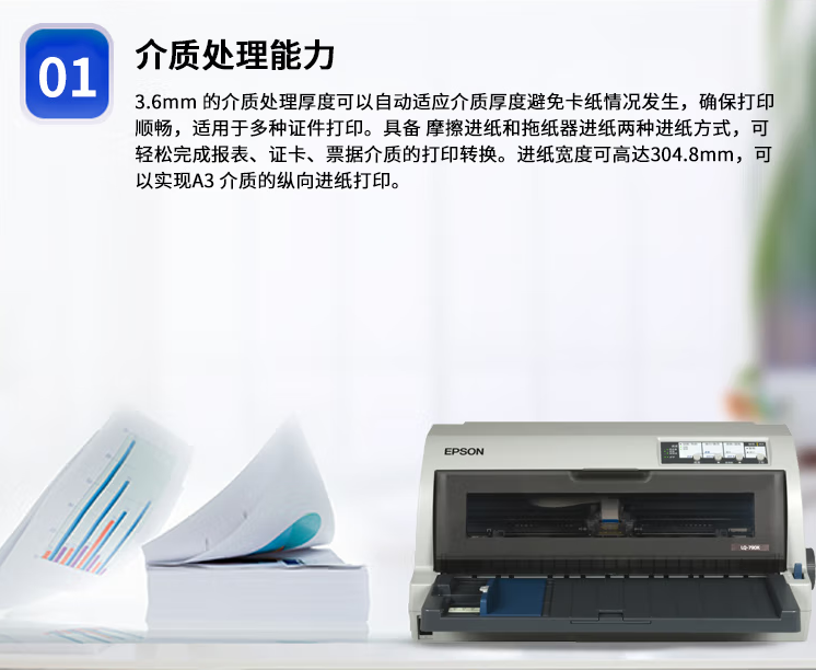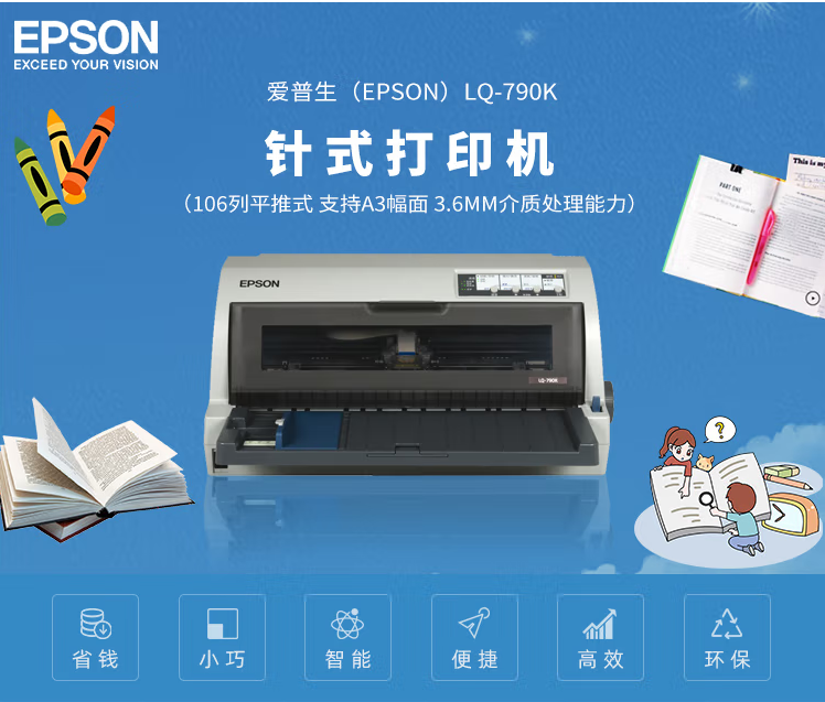 愛普生 LQ-790K 針式打印機(jī) 106列平推式 支持A3幅面 3.6mm介質(zhì)處理能力
